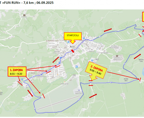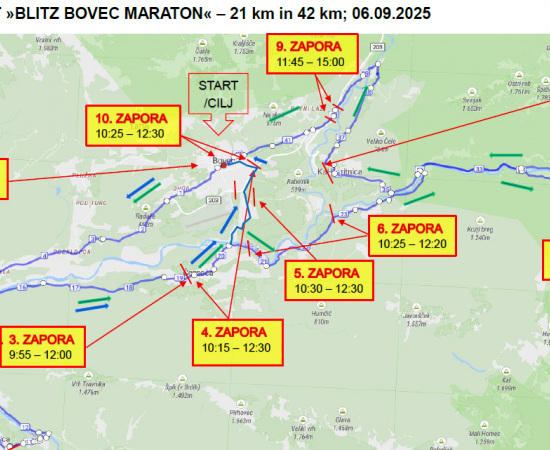 Vse tekače in ostale uporabnike državnih in občinskih cest obveščamo, da bodo na dan Blitz Bovec maratona 2025 pogoste popolne oziroma delne zapore cest.